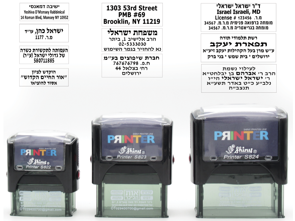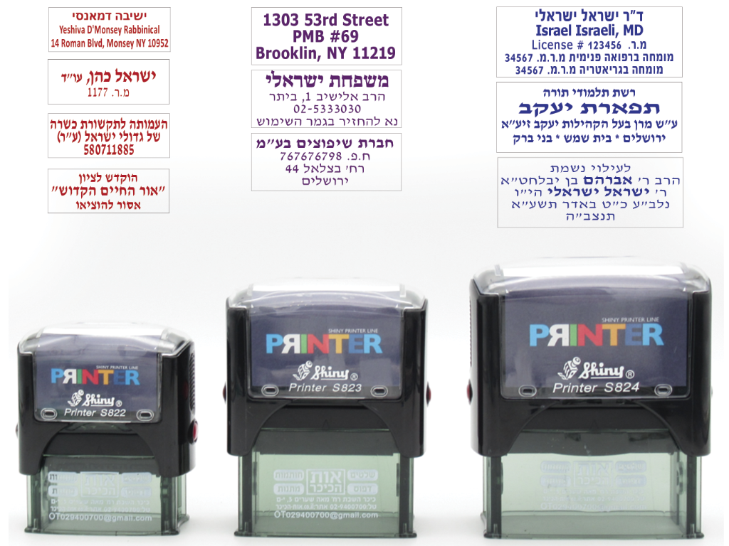 חותמת טקסט – דיו כחול/סגול/אדום/ירוק