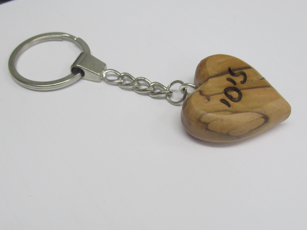 מחזיק מפתחות בצורת לב מעץ זית עבה